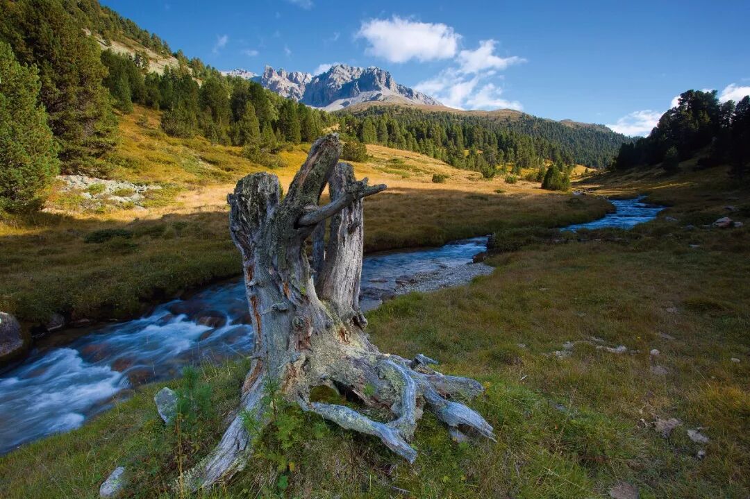 当你跨进瑞士国家公园以后,一个纯粹、自然的小世界,嚯地一下呈现在你的眼前。几乎伸手即可触碰的蓝天,奇特美妙的山谷和荒原带来的新鲜感,像极了纳尼亚传奇中的淘气小孩,躲进衣柜,就闯入了一个未知世界。