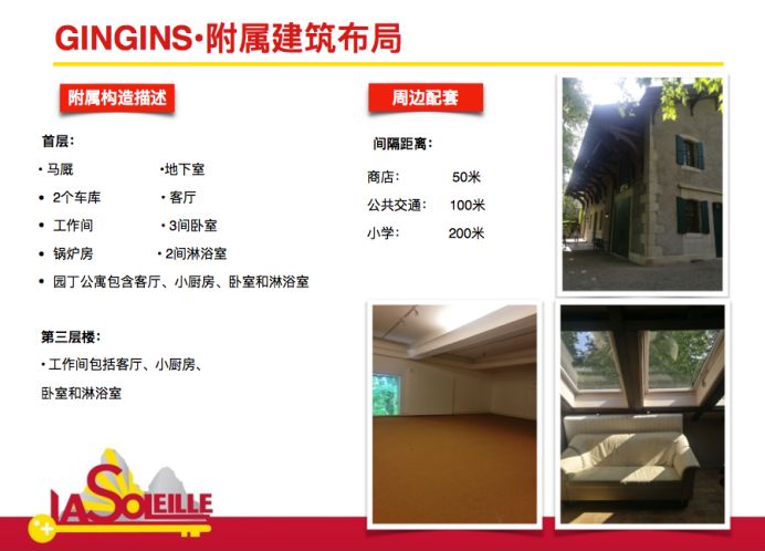(5)房产一次性交易费为4.5%~5%,包含消费税、公证费、保险等;GINGINS城堡的房产持有税是每年按照该城堡评估价值0.15%缴纳(评估价值一般是售价的70%)。