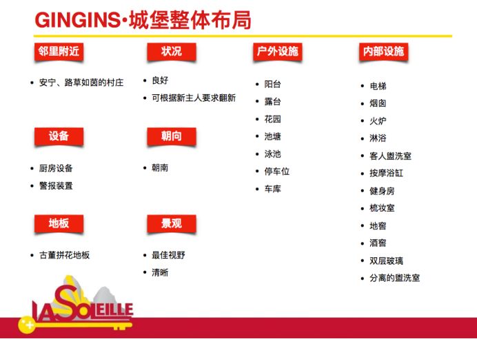 * 对古堡投资项目感兴趣的客户,雷梭勒家族办公室可以在48小时内安排参观,并与相关各方(当地行政、公证员、拍卖师、房东等)会面。