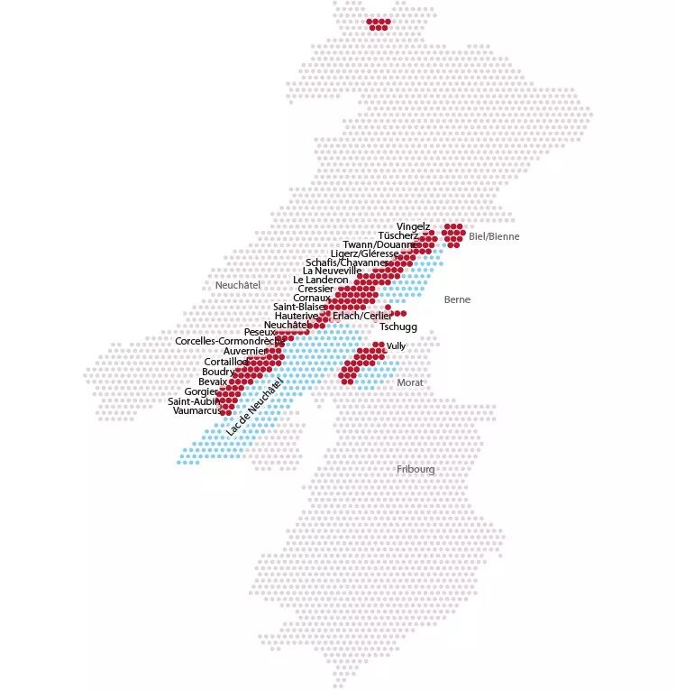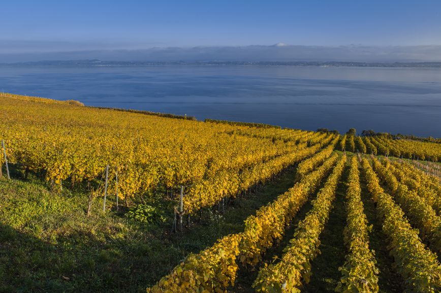 三湖产区位于瑞士西部法语区,葡萄园主要分布在纳沙泰尔湖、比尔湖、穆尔滕湖沿岸,三个湖泊将此产区分为NEUCHATEL、BIEL-BIENNE、MORAT-VULLY三个子产区,其中Neuchatel产区产量最大,仅湖区北岸的产量就超过三湖产区总产量的60%。