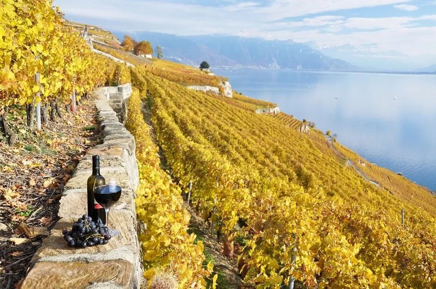 在瑞士,景色秀丽的葡萄园不仅作农业用途,更是令人如痴如醉、流连忘返的风景区,最为著名的当属拉沃梯田葡萄园。拉沃葡萄园以其悠久的梯田式葡萄种植、酿造传统,旖旎的日内瓦湖风光和湖畔雄伟的阿尔卑斯山景观闻名,2007年联合国教科文组织将其列为世界文化遗产。古老的瑞士诗歌里说有三个太阳照耀着这片葡萄园:一个在天上,炙热又慷慨;一个在水面,波平如镜的湖水把阳光反射到葡萄树上;一个在古老的石墙上,它在夜间散发着白天储存的热量。这就是拉沃出产优质葡萄酒的秘密所在,也因此,拉沃葡萄酒一直是高品质瑞士葡萄酒的代名词。
