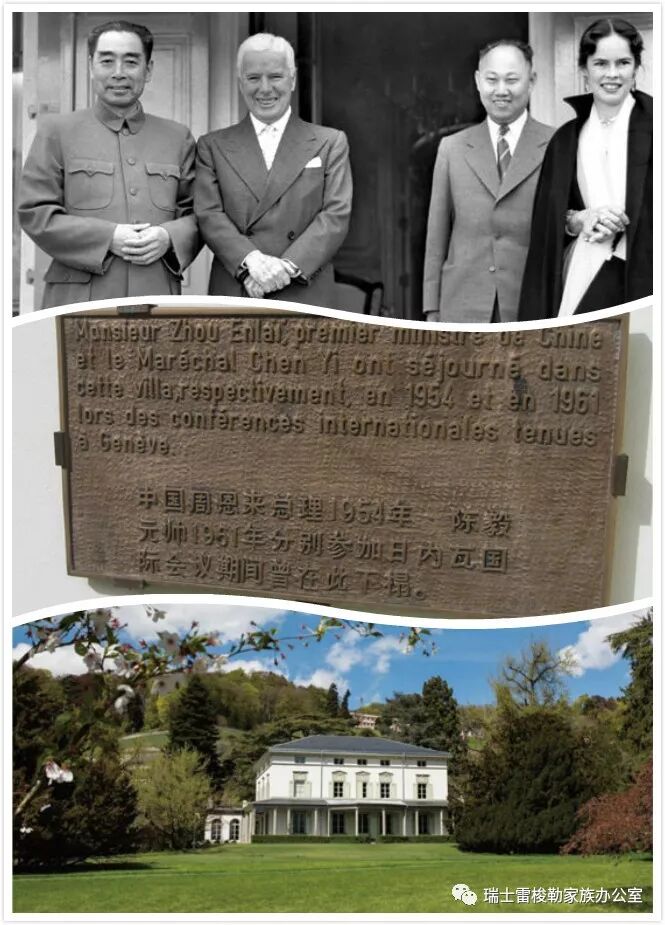 景色秀丽的莱蒙湖畔,坐落着一幢白色的老式三层建筑,名叫花山别墅,它位于瑞士日内瓦郊区韦尔斯瓦小镇的一个偏僻角落。1954年夏,周恩来总理率领中国代表团曾下榻于此(1961年,外交部长陈毅元帅来访日内瓦时,代表团一行也同样下榻于此。或许是意识到中国人对花山别墅的特殊情结,其现有的主人在建筑物外墙上特地钉上了一块铜牌,上面用中法双语标明:中国周恩来总理1954年、陈毅元帅1961年分别出席日内瓦国际会议期间曾在此下榻)。当时就在这里,周恩来与国际和平奖获得者、全家定居瑞士、对中国十分友好的世界著名电影明星卓别林夫妇,留下了一段难忘的情谊。