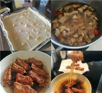 大家经过了简单沟通,在欢声笑语中确认好了当天想吃的菜式,裹上围裙就兴致勃勃地开始了备餐。香酥排骨、凉拌黄瓜、酱香炖肉、苹果挞、番茄鸡蛋汤......就是最终确认的几道菜式。