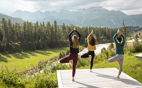 或者在恩嘎丁群山中寻找宁静,寻找内在的自我。蓬特雷西纳的克罗能霍夫大酒店(Grand Hotel Kronenhof)提供户外瑜伽课程。远处熠熠发光的洛塞克冰川和附近溪水的潺潺流动声,为充满活力和放松身心的瑜伽时间营造出独特的氛围。